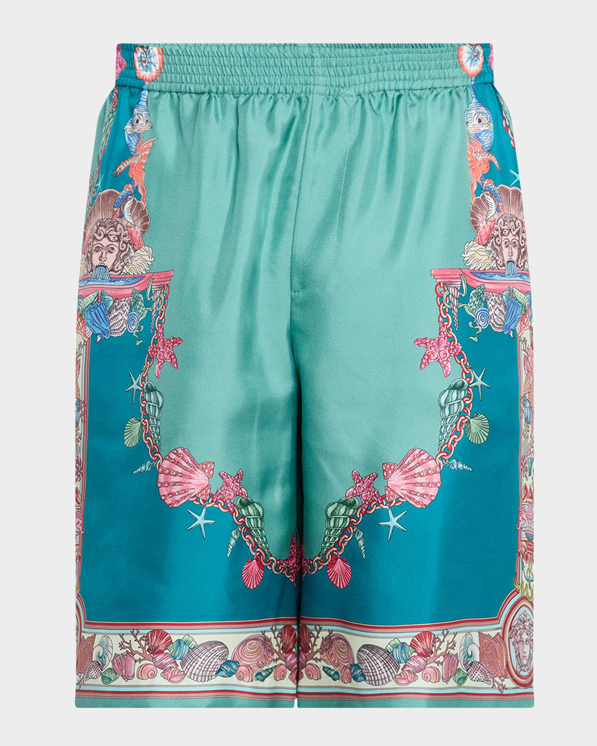 - Versace shorts in luxurious silk twill from the La Vacanza collection showcasing seasonal Coral Theatre, Underwater Barocco prints - Regular rise - Side slip pockets - Back welt pocket - Relaxed legs - Elasticized waistband - Pull-on style - Silk - Dry clean - Made in Italy