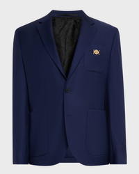 - Versace formal blazer in pure wool - Features gold-tone Medusa Biggie hardware - Notch lapels - Single-breasted front - Long sleeves with button cuffs - Front patch pockets; interior welt pockets - Slim fit - Vented back - Virgin wool - Lining: Cotton/cupro - Dry clean - Made in Italy