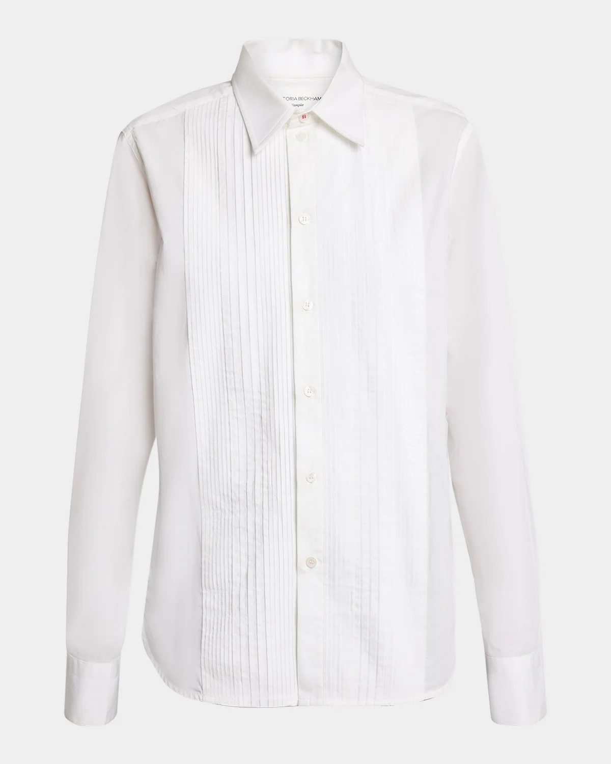 Crafted from cotton poplin, this overshirt shirt by Victoria Beckham is tailored with pintuck detailing and two back pleats. Spread collar Buttoned front placket Long sleeves with buttoned cuffs Yoked back Relaxed fit Cotton Imported SIZE & FITModel measurements: 5 & apos;10" tallModel is wearing a US size 4/Small