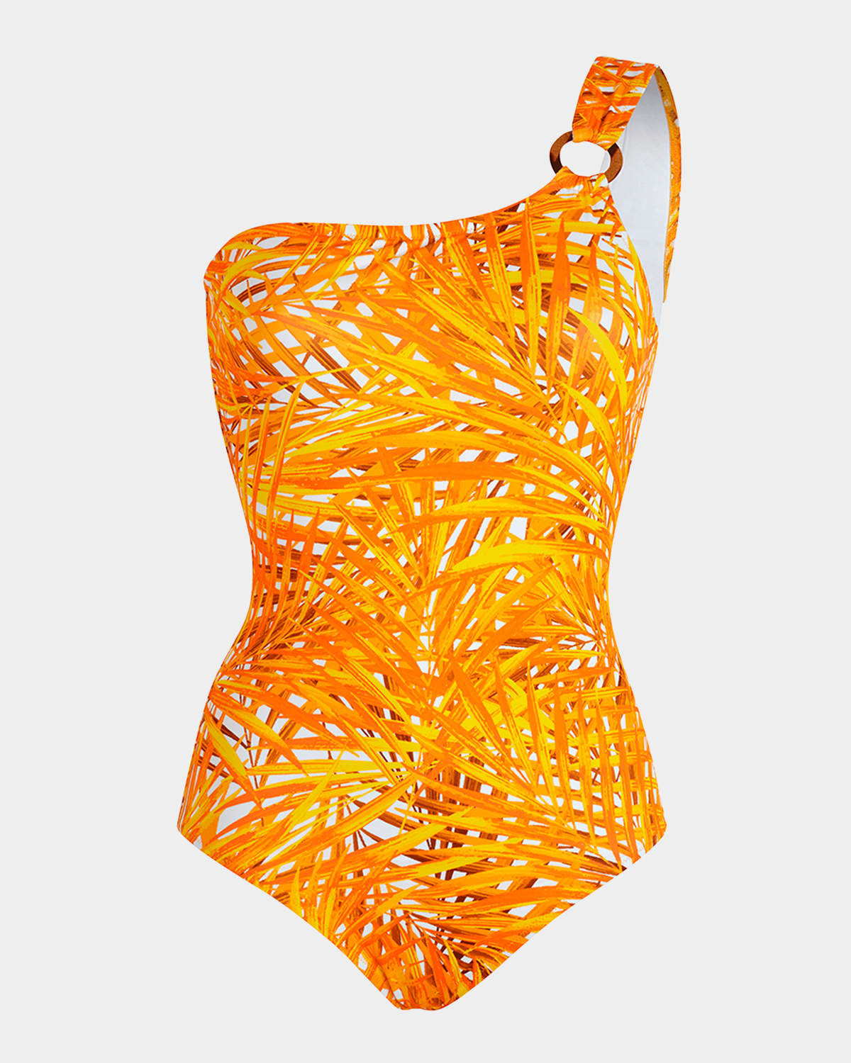 Women One-Shoulder One-piece Swimsuit Palm Leaves
