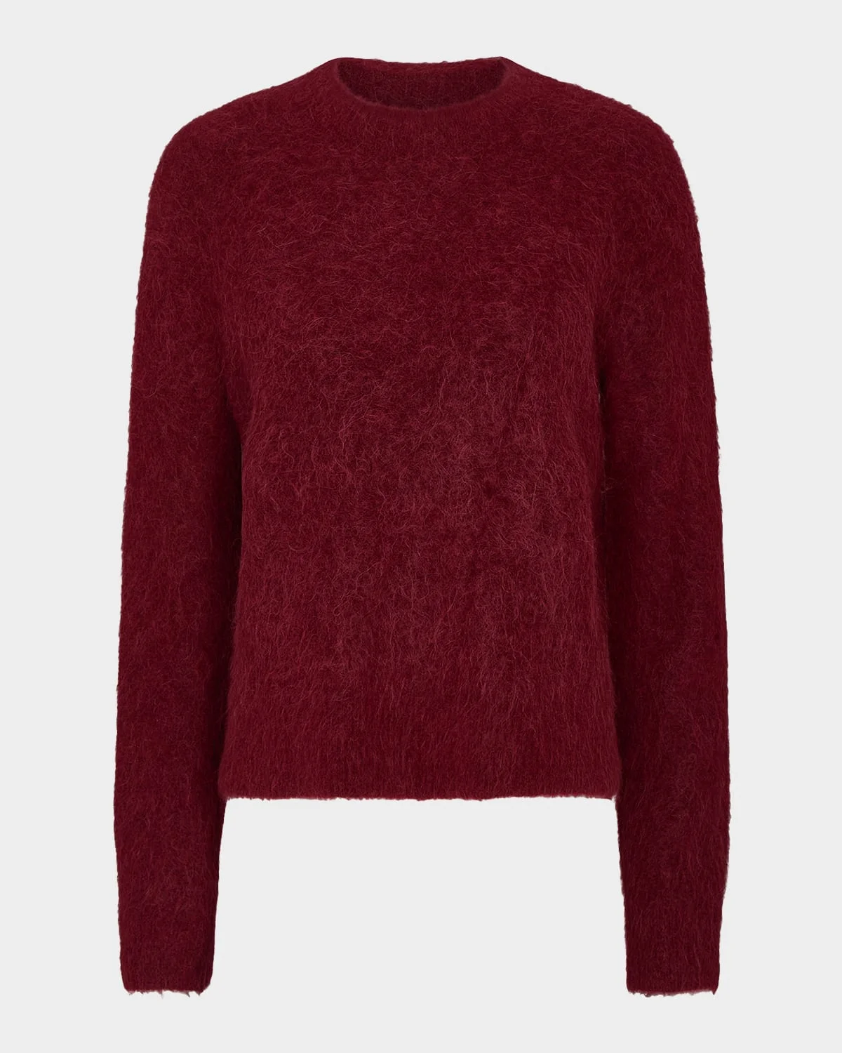 Knit from a cozy alpaca blend, this sweater by Vince features a soft, fuzzy finish and ribknit trim for added definition Approx. 21.8"L from shoulder to hem Crew neckline Dropped shoulders Long sleeves Relaxed fit Hip length Pullover style Alpaca/nylon/polyamide/spandex Unlined Hand wash cold or dry clean, lay flat to dry, cool iron as needed Imported