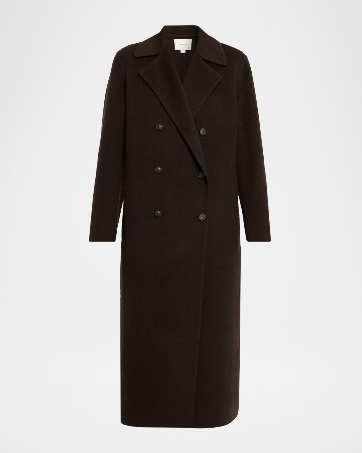 - A timeless silhouette crafted from luxurious, brushed cashmere and wool, this Vince jacket elevates your go-to winter coat with a quiet luxury feel. - Wide notch lapels - Double-breasted front - Long sleeves - Side seam pockets - Classic fit - Walking vent - Button-front - Wool/cashmere - Hand wash cold; dry clean if needed. - Imported