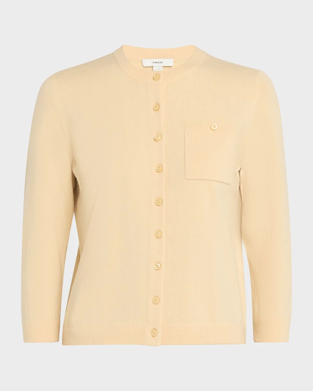 L & apos;Agence cardigan crafted from a luxurious blend of wool and cashmere & nbsp; Crew neckline Three-quarter sleeves Chest pocket Classic fit Hem sits at the hip Button-front & nbsp; Wool/cashmere/nylon/polyamide Hand wash Imported