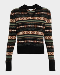 Luxurious cashmere polo sweater decorated with a fairisle motif by Vince. Spread collar; V neckline Long sleeves Classic fit Hem sits at the hip Pullover style Cashmere Hand wash or dry clean Imported