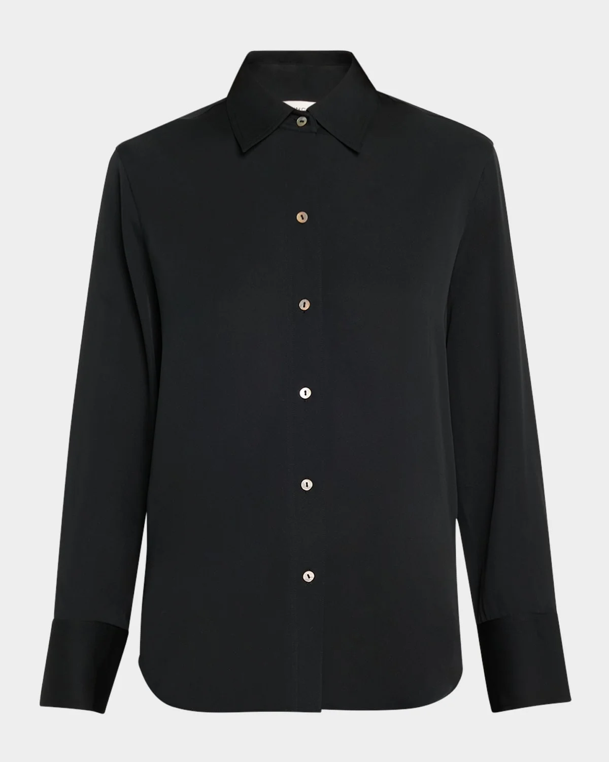 - Vince solid silk blouse - Point collar - Long sleeves with button cuffs - Classic fit - Hem falls to the hip - Button-front - Silk/elastane - Hand wash or dry clean - Imported
