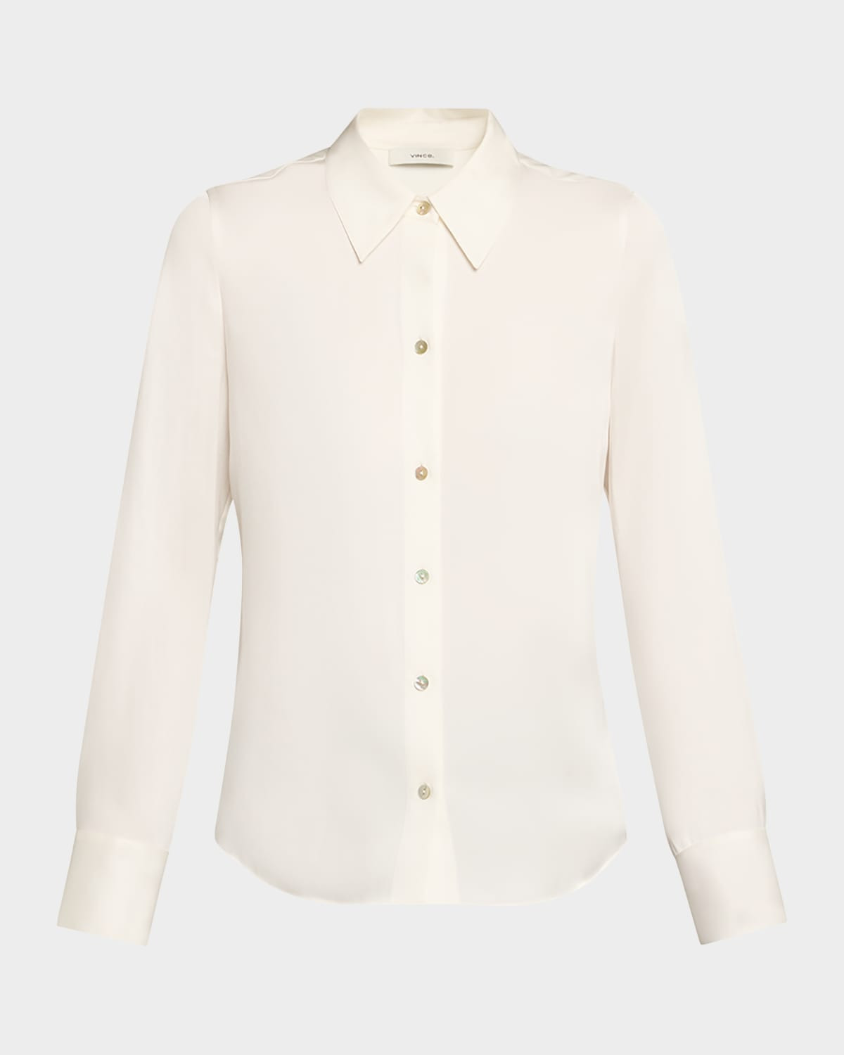 - Vince classic stretch silk shirt - Point collar - Long sleeves with button cuffs - Slim fit - Hem falls to the hip - Button-front - Silk/viscose/spandex - Hand wash cold or dry clean - Imported