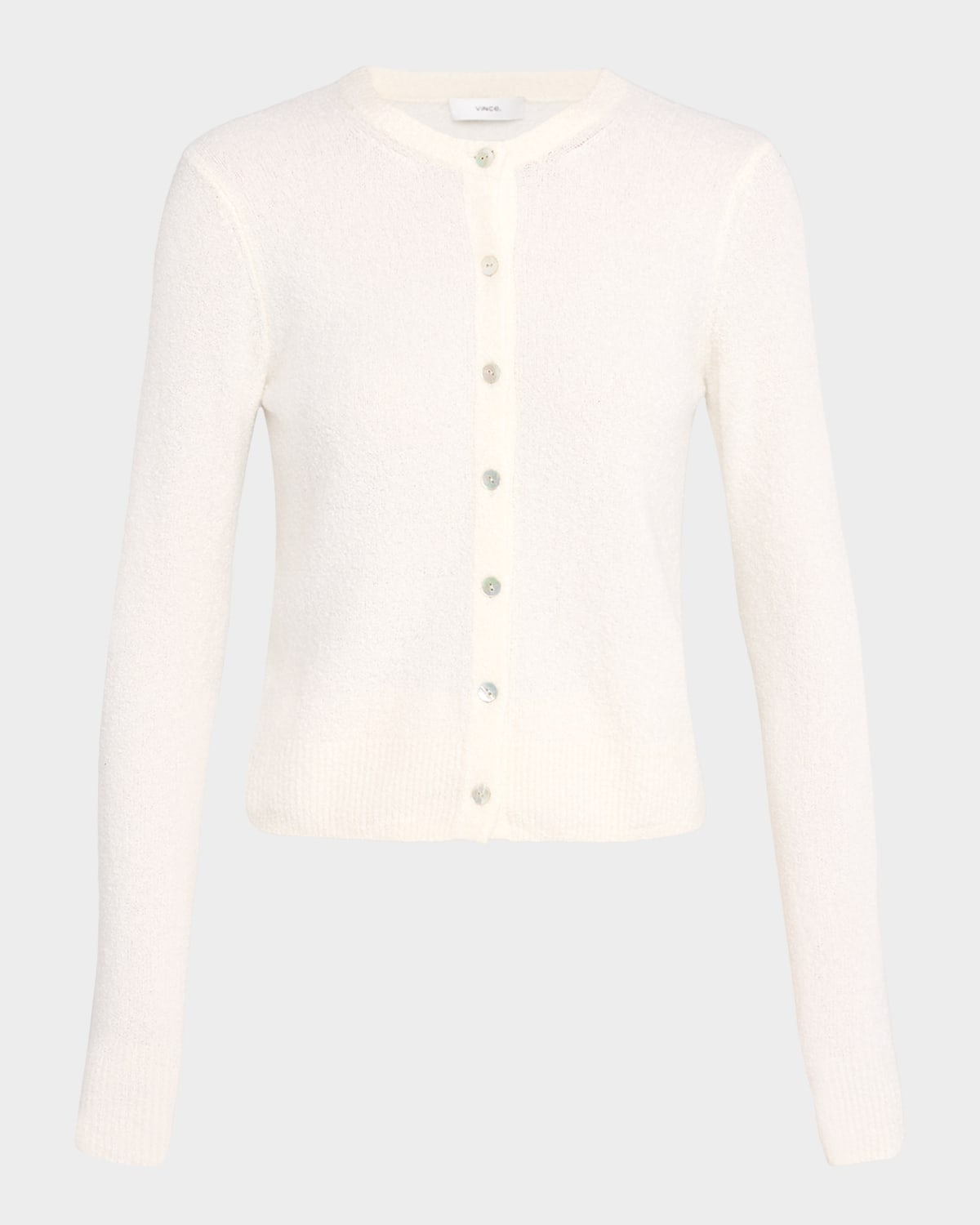 - Vince soft boucle cardigan - Crew neckline - Long sleeves - Classic fit - Hem sits at the hip - Button-front - Silk/cashmere/nylon/polyamide - Hand wash or dry clean - Imported
