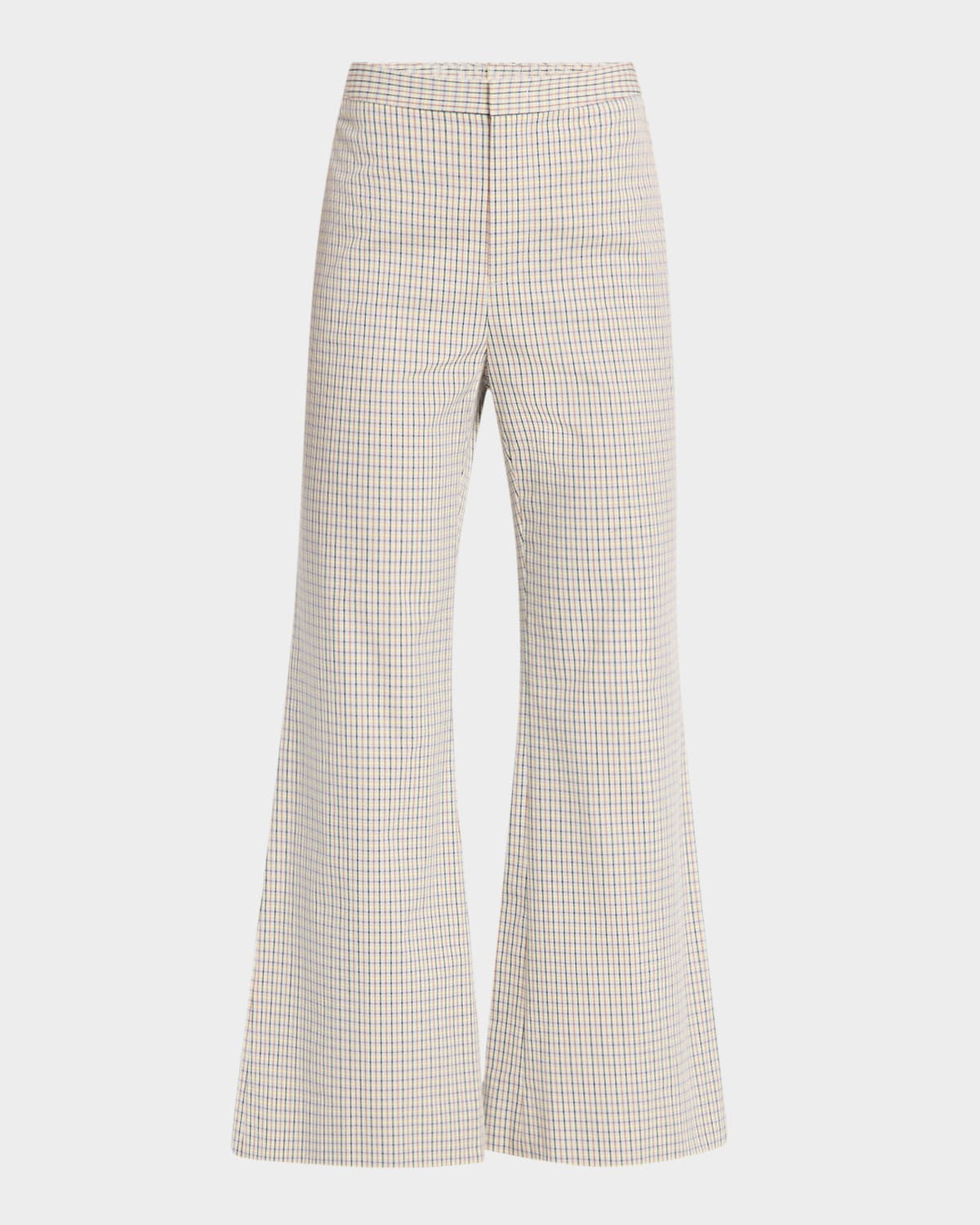- Vince gardeners check flare pants - Low rise; sits at the hip - Four-pocket style - Fitted through the hip and thigh - Cropped length - Hook/zip fly; belt loops - Cotton/elastane - Dry clean or machine wash warm - Imported