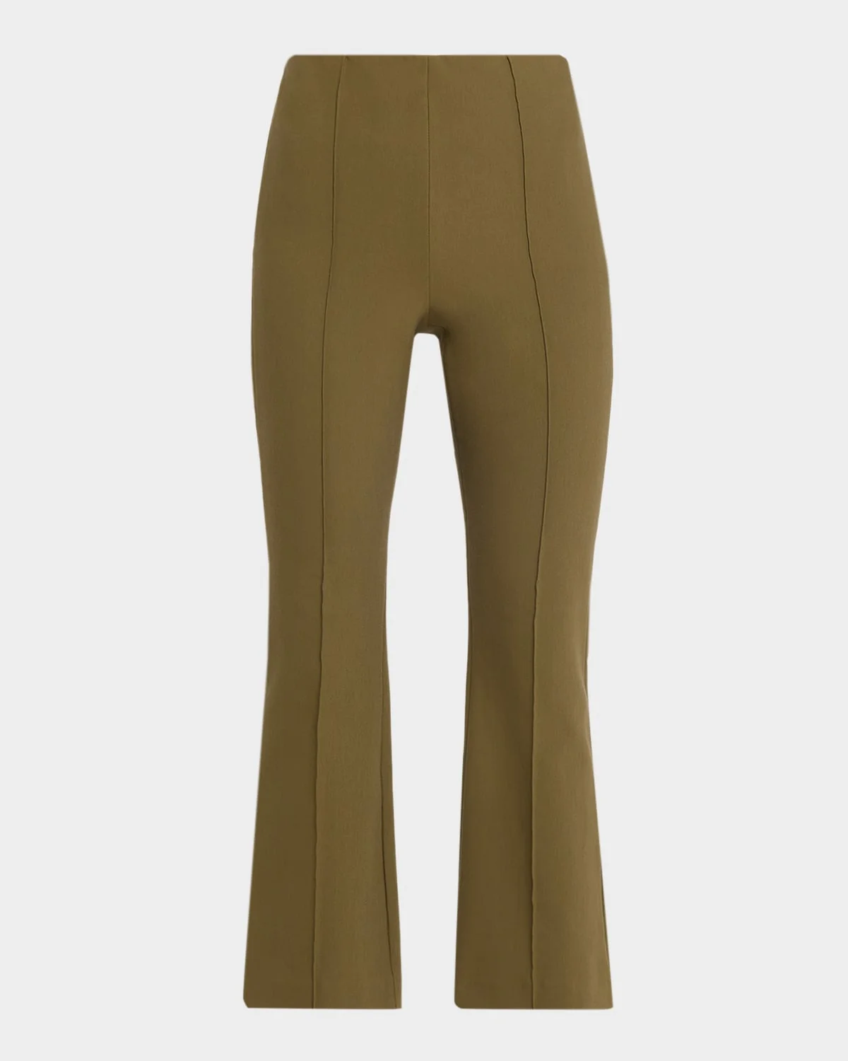 - Vince pants with front pintucks - High-rise sits high on the hips - Flat front - Back welt pockets - Cropped at the ankle - Flared legs - Invisible side zipper - Cotton/spandex - Machine wash - Imported - Model is 5'10"/177cm.