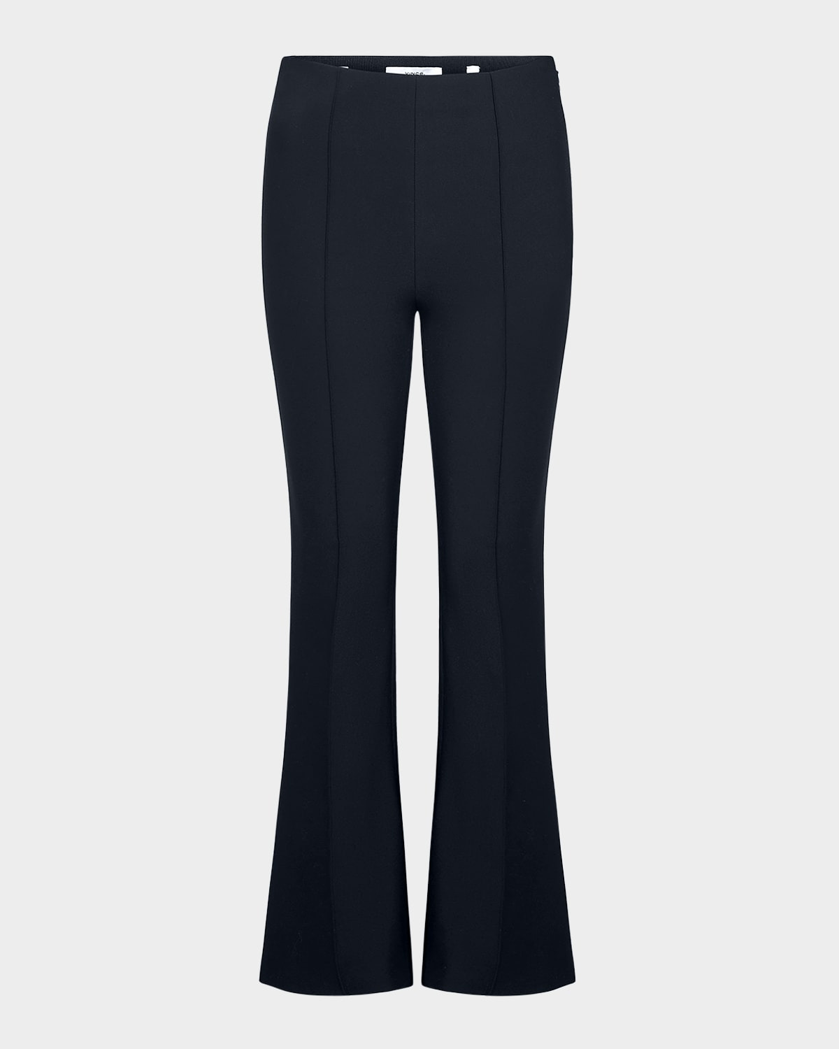 - Vince pants with front pintucks - High-rise sits high on the hips - Flat front - Back welt pockets - Cropped at the ankle - Flared legs - Invisible side zipper - Cotton/spandex - Machine wash - Imported - Model is 5'10"/177cm.