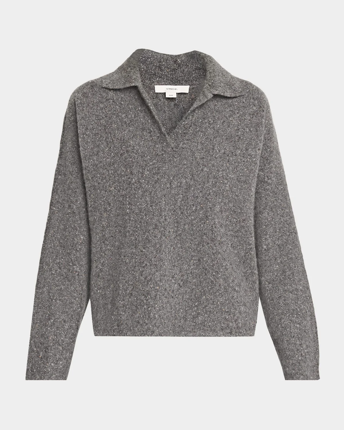 Knit from sumptuous cashmere, this polo sweater by Vince is elevated with a textural, multicolored Donegal finish Approx. 22.5"L from shoulder to hem Collared V neckline Long dolman sleeves Relaxed fit Hip length Pullover style Cashmere Hand wash cold or dry clean, reshape and lay flat to dry Imported