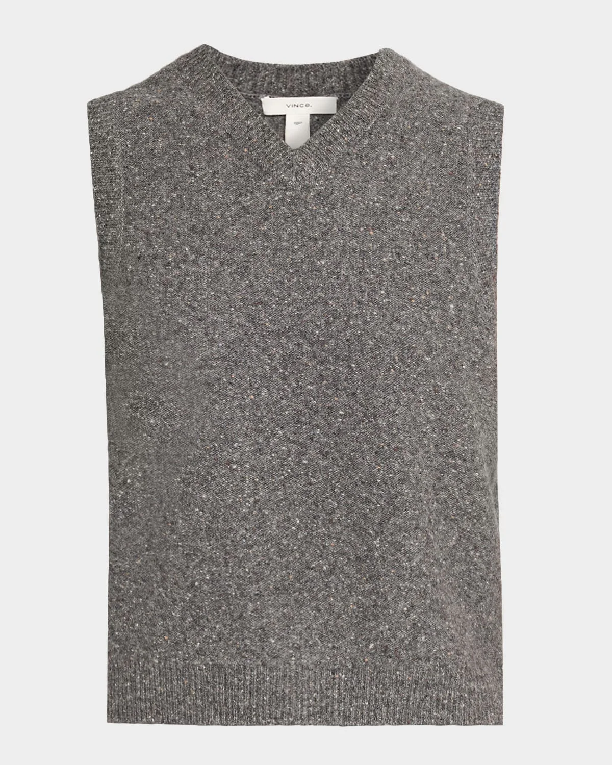 Knit from plush cashmere, this sweater vest by Vince is distinguished by a textural Donegal finish Approx. 21"L from shoulder to hem High V neckline Sleeveless Relaxed fit Hip length Pullover style Cashmere Hand wash cold or dry clean, reshape and lay flat to dry Imported