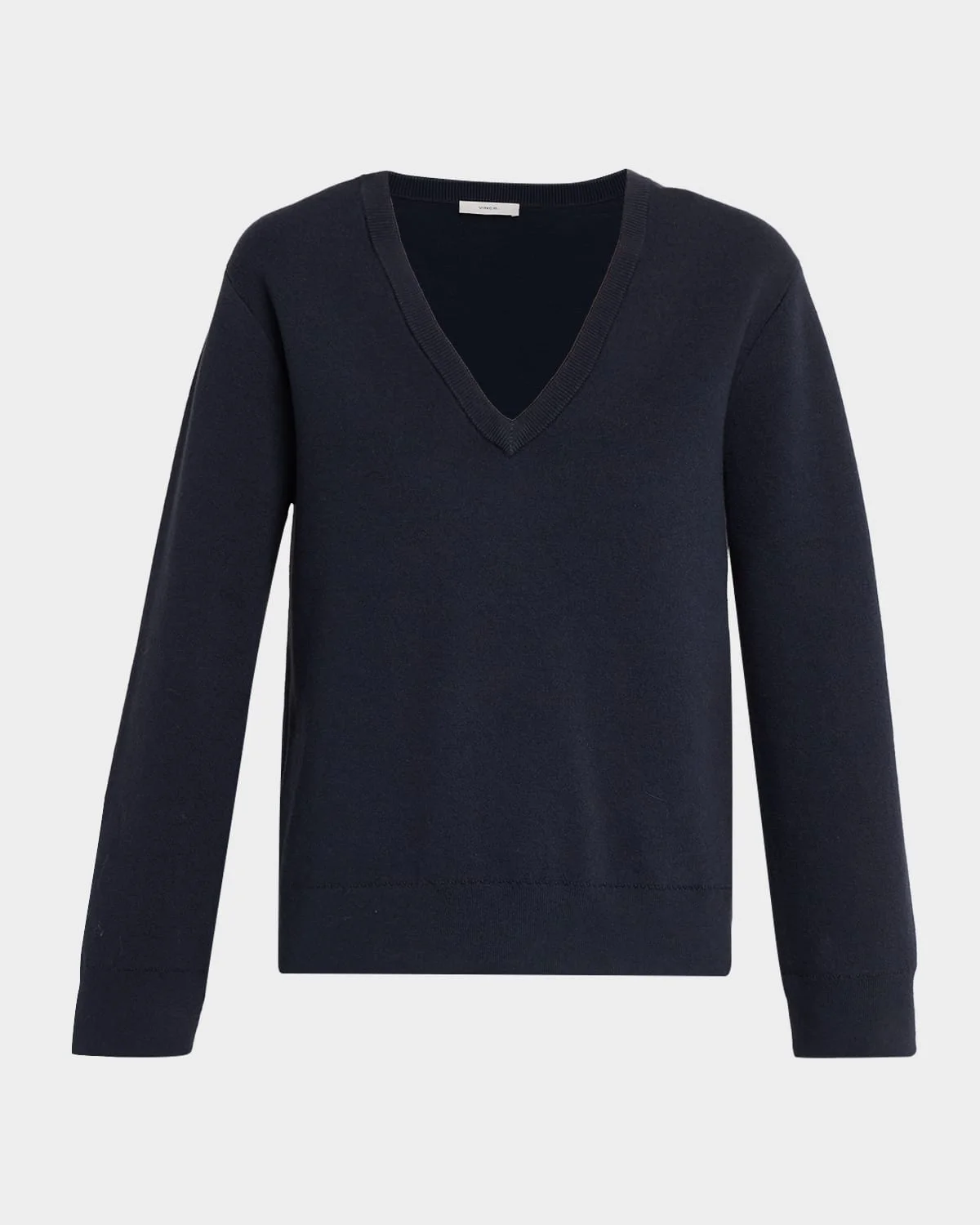Vince classic sweater crafted from luxurious double-face cashmere & nbsp; V neckline Long sleeves Relaxed fit Hem falls to the hip Pullover style & nbsp; Cashmere & nbsp; Hand wash Imported SIZE & FITModel measurements: 5 & apos;10" tallModel is wearing a US size 4/Small
