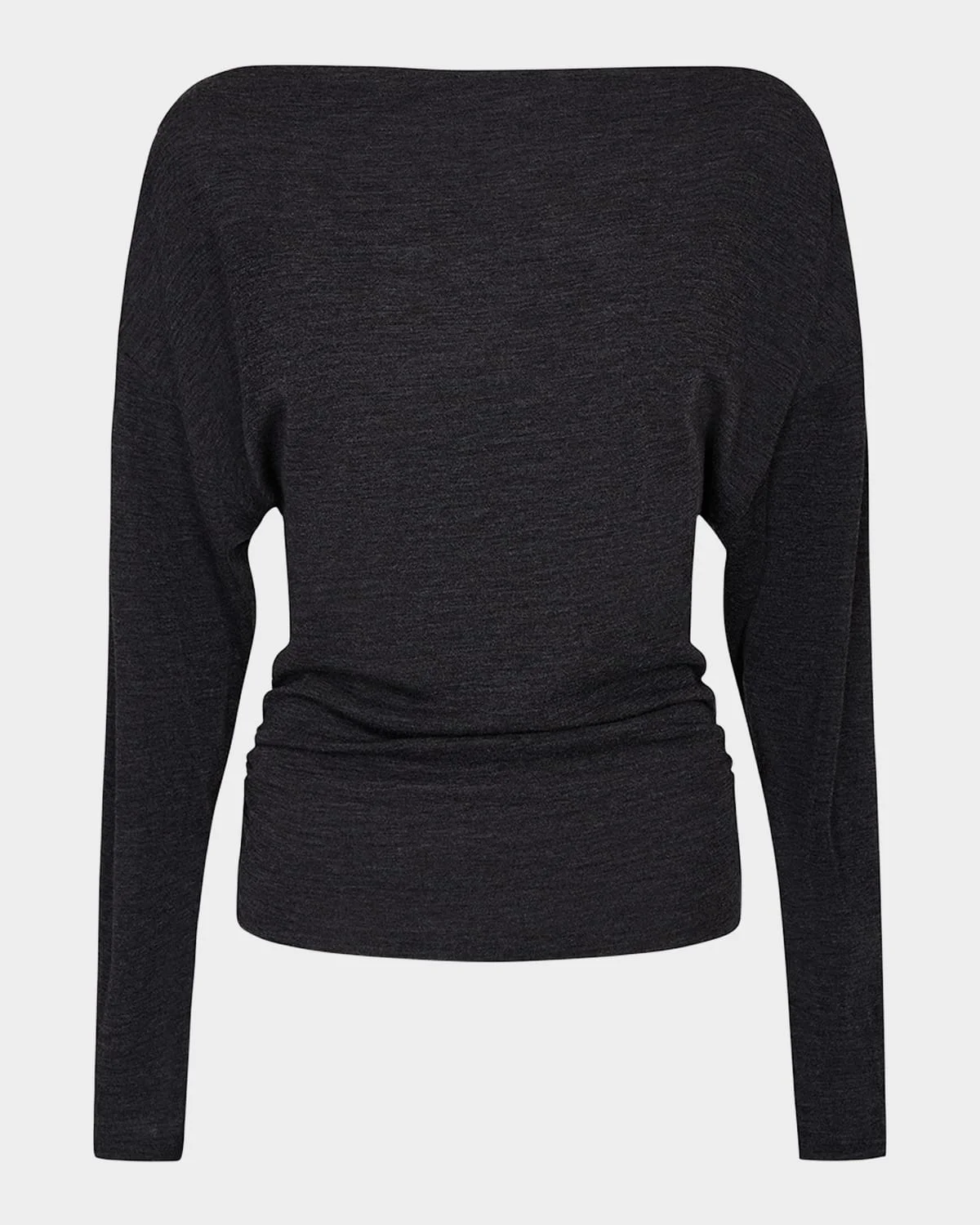 Woolblend top finished with flattering draping by Vince. High neckline Dropped shoulders Long sleeves Relaxed fit Hem sits at the hip Pullover style Wool/acrylic Hand wash or dry clean Imported