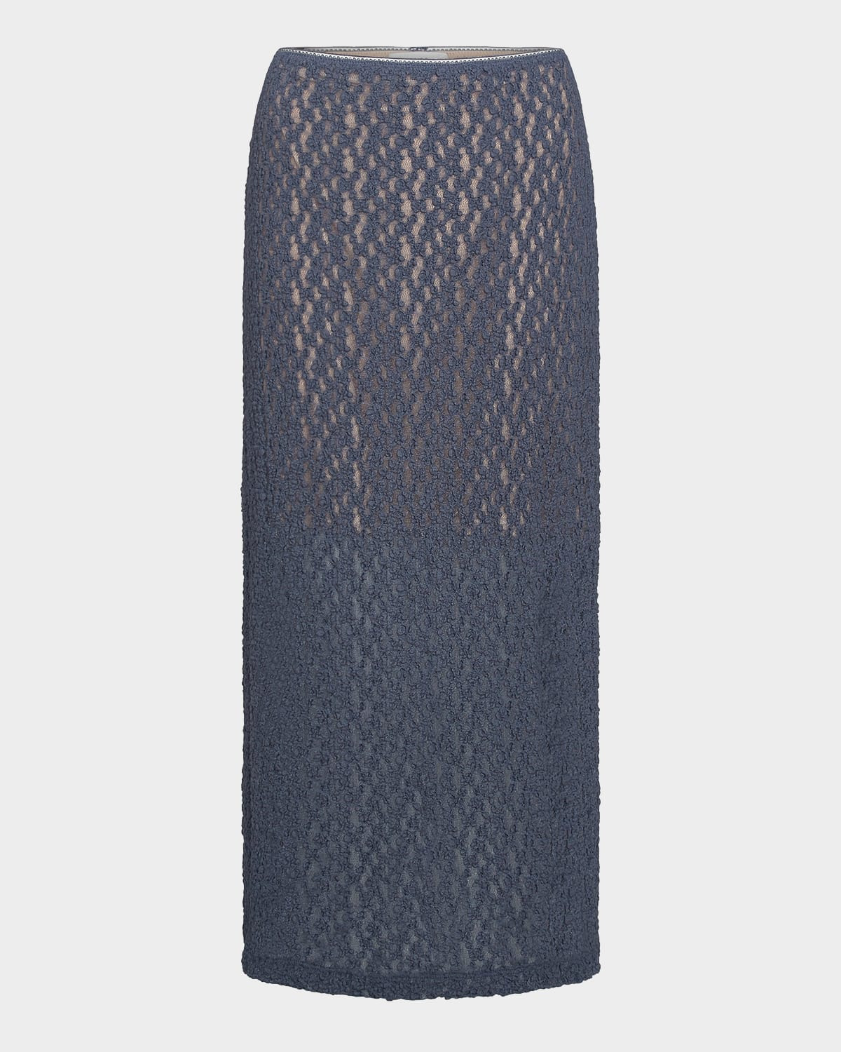 - Featured in a smocked floral motif, the Vince midi skirt is finished with a tonal mini underlay - Sits on the natural waist - Hem falls below the knee - Straight silhouette - Slip-on style - Nylon/cotton/spandex - Imported - Model is 5'10"/177cm.