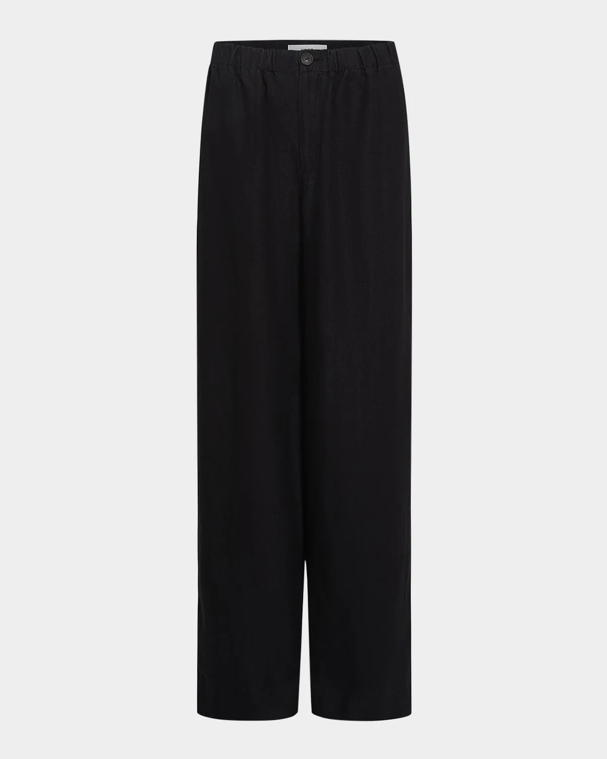 Vince utility pants with a four-pocket finish Approx. 32" inseam Mid rise Elasticized waistband Relaxed fit through wide legs Full length Button closure Hemp Machine wash cold, tumble dry Imported Model is 5 & apos;10"/177cm.