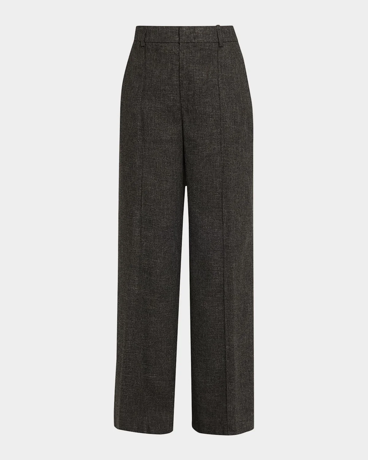 Classic trousers crafted from Jasper wool by Vince. High rise Fourpocket style Pintuck front Wide legs Full length Hook/zip fly; belt loops Viscose/linen/wool Unlined Imported