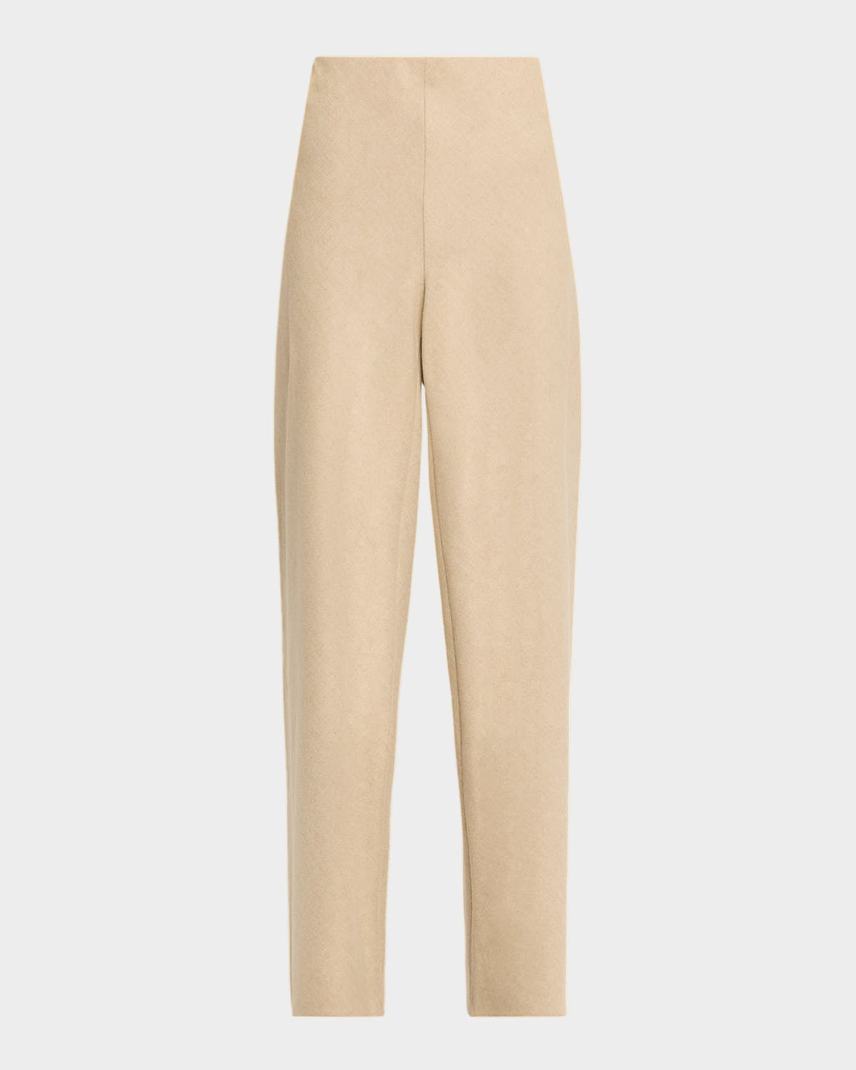Solid wool trousers by Vince. Approx. 32.5" inseam High rise Wide legs Full length Hook/zip fly Wool/polyester/viscose Hand wash or dry clean; cool iron if needed Imported