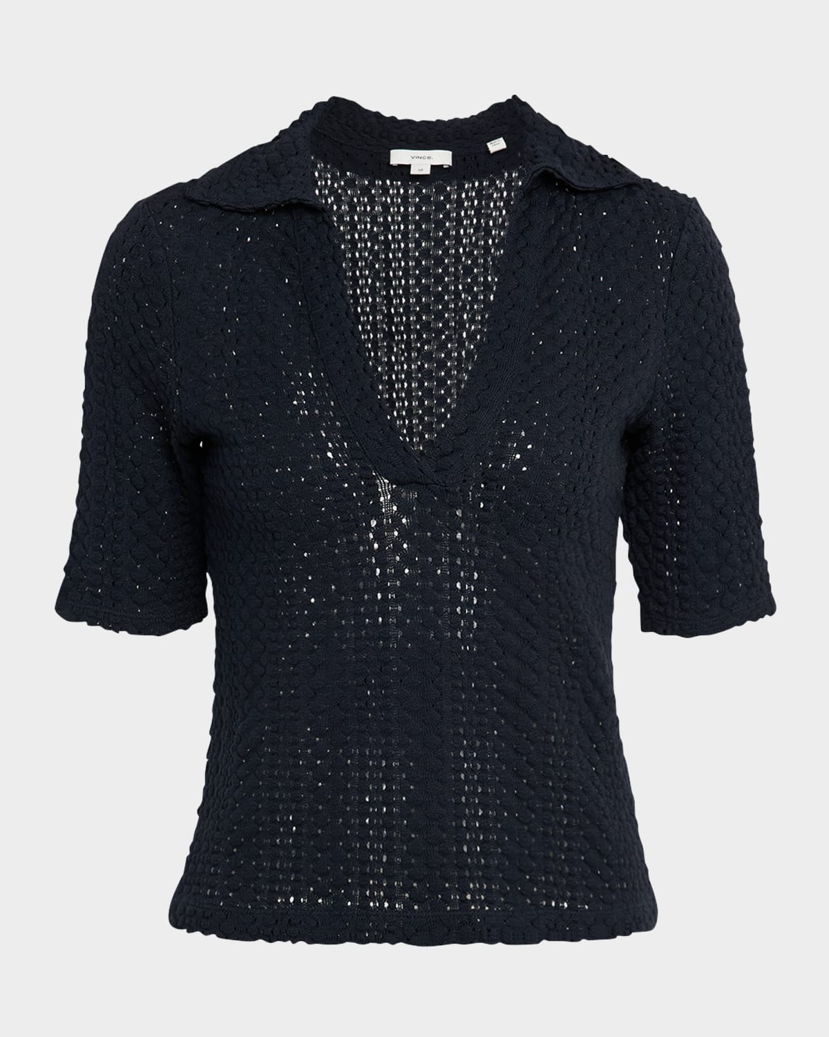 - Vince open-knit polo top - Point collar; V neckline - Elbow-length sleeves - Fitted - Hem sits at the hip - Pullover style - Cotton/nylon/polyamide/spandex - Dry clean - Imported