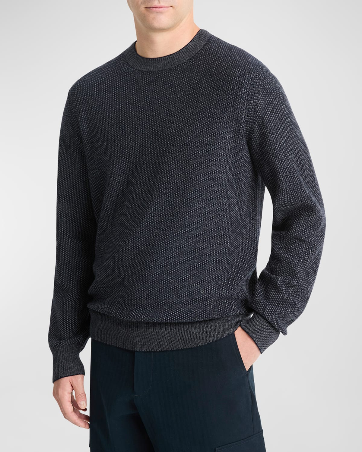 - Vince sweater in geometric jacquard - Crew neckline - Long sleeves - Ribbed trim - Pullover style - Wool/cotton/cashmere - Hand wash or dry clean - Imported - Model is 6'1"/185cm.