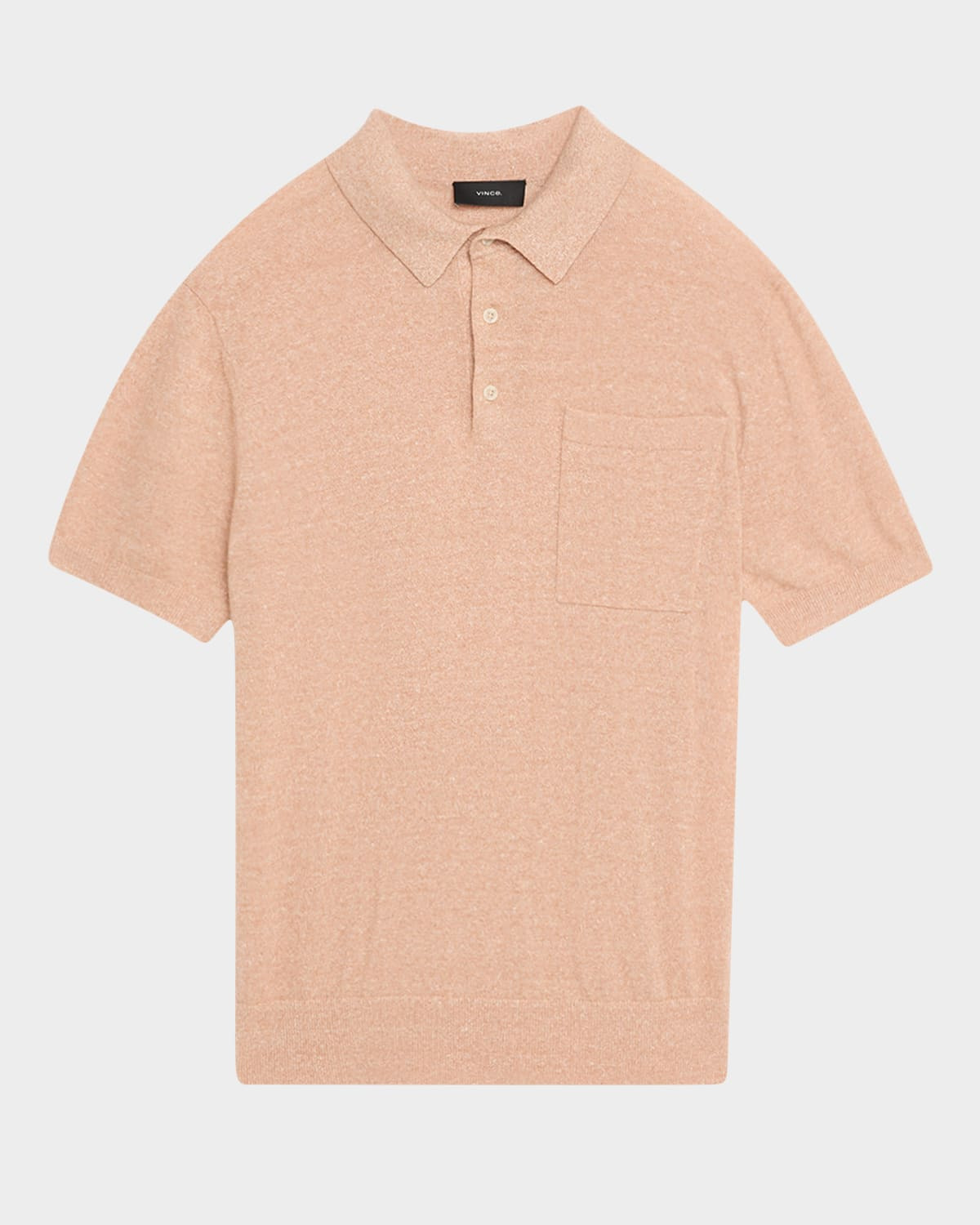 - Vince lightweight polo sweater with a slubbed, melange finish - Classic spread collar - Three-button placket - Chest patch pocket - Short sleeves - Ribbed armbands and hem - Regular fit - Linen/wool/cashmere - Hand wash or dry clean - Imported