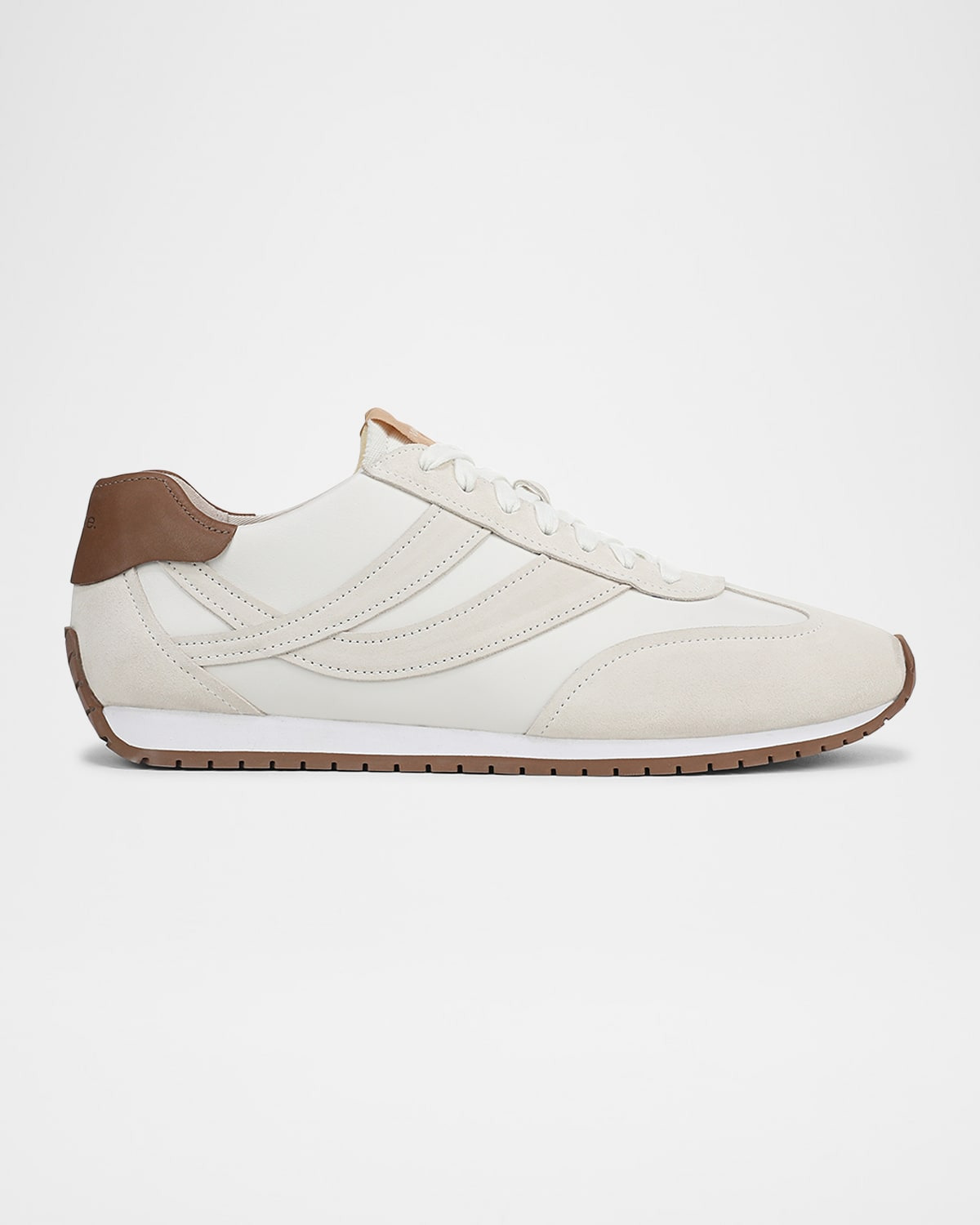 - The retro runner is reimagined for now in a streamlined silhouette crafted from the softest suede and leather. Its details subtly nod to California's coastal surfing scene, from the overlapping side-stripe accents reminiscent of swell breaks to a patterned outsole inspired by ocean waves. - Vince "Oasis" low-top sneakers in leather - 0.50” flat heel - Reinforced round T-toe - Lace-up vamp - Woven label on the tongue - Padded collar - Leather lining - Plush foam footbed for premium comfort - Debossed backstay logo - Rubber outsole - Professional cleaning recommended - Imported