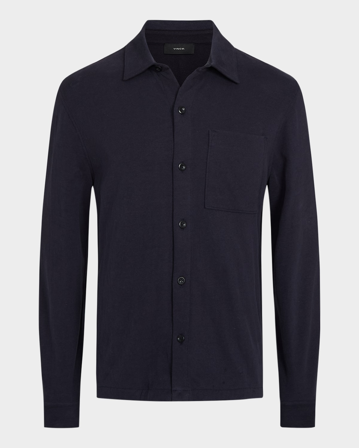 - Vince shirt jacket in sueded cotton jersey for a soft handfeel - Spread collar - Button placket - Chest patch pocket - Long sleeves - Single-button cuffs - Back yoke - Straight hem - Cotton - Machine wash cold, tumble dry - Made in Peru
