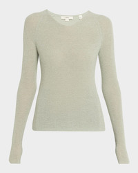 Soft metallic knit top by Vince. High V neckline Long sleeves Slim fit Hem sits at the hip Pullover style Nylon/polyamide/wool/animal hair Dry clean or hand wash Imported