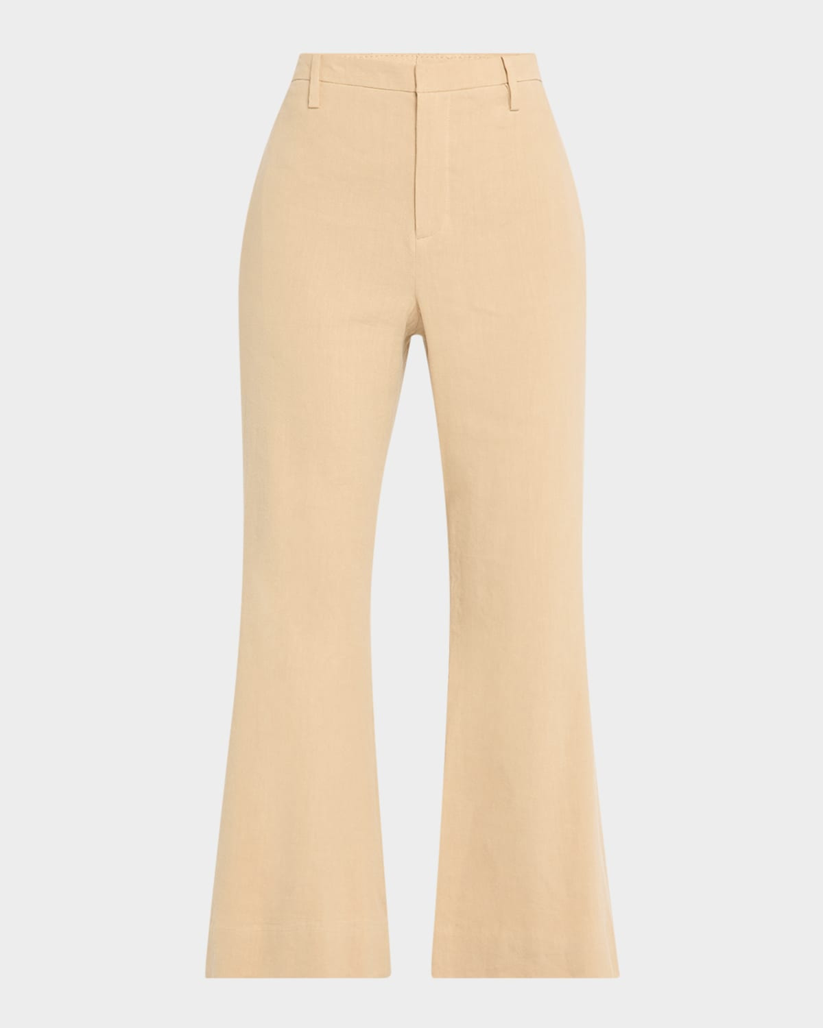 - Vince linen-blend trousers - Approx. 26.75" inseam - Mid-rise; sits high on the hip - Four-pocket style - Flared legs - Cropped length - Hook/zip fly; belt loops - Linen/rayon/cellulose acetate/spandex - Hand wash cold or dry clean - Imported - Shipping - Direct from Vendor, usually ships within 10 business days.