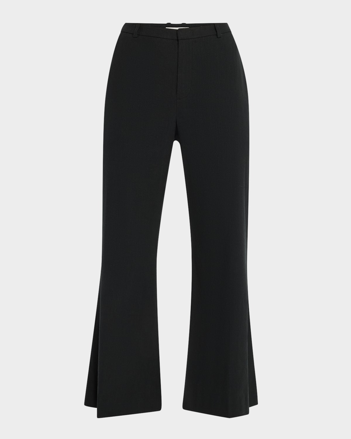 - Vince linen-blend trousers - Approx. 26.75" inseam - Mid-rise; sits high on the hip - Four-pocket style - Flared legs - Cropped length - Hook/zip fly; belt loops - Linen/rayon/cellulose acetate/spandex - Hand wash cold or dry clean - Imported - Shipping - Direct from Vendor, usually ships within 10 business days.