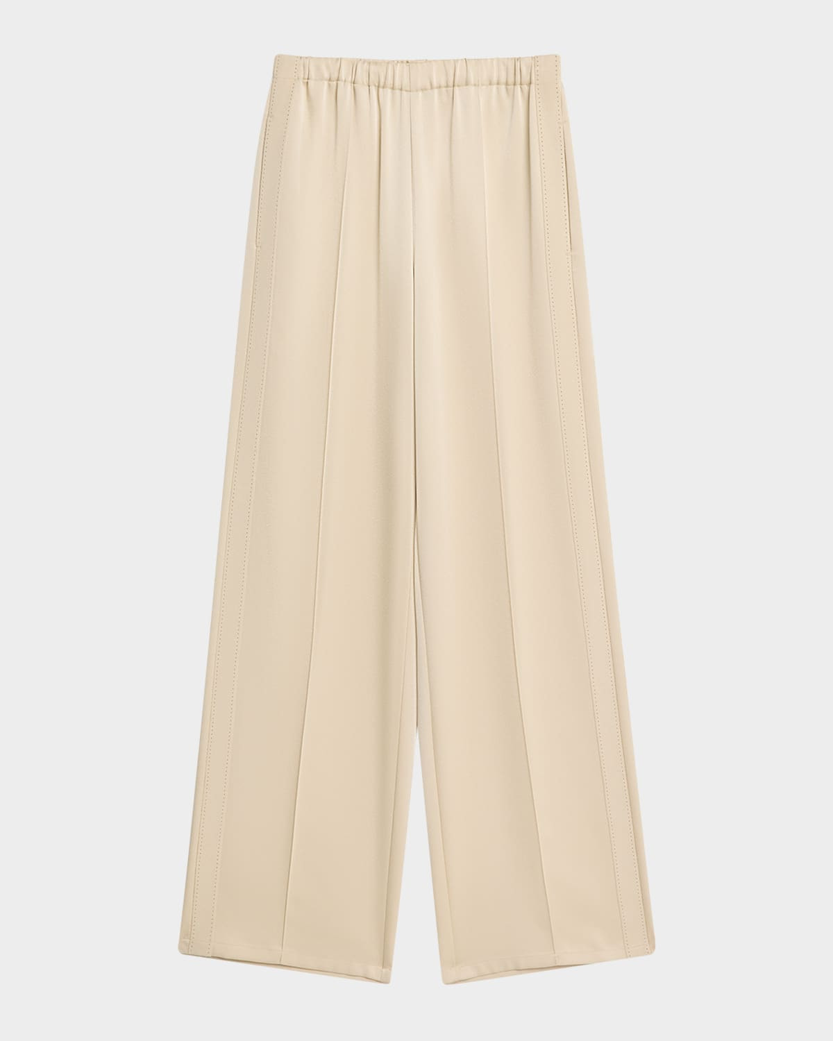 - Vince silk-linen pants finished with tonal side straps - Approx. 32.5" inseam - Mid-rise; sits high on the hip - Elastic waistband - Four-pocket style - Pintuck front - Wide legs - Full length - Pull-on style - Silk/linen - Imported