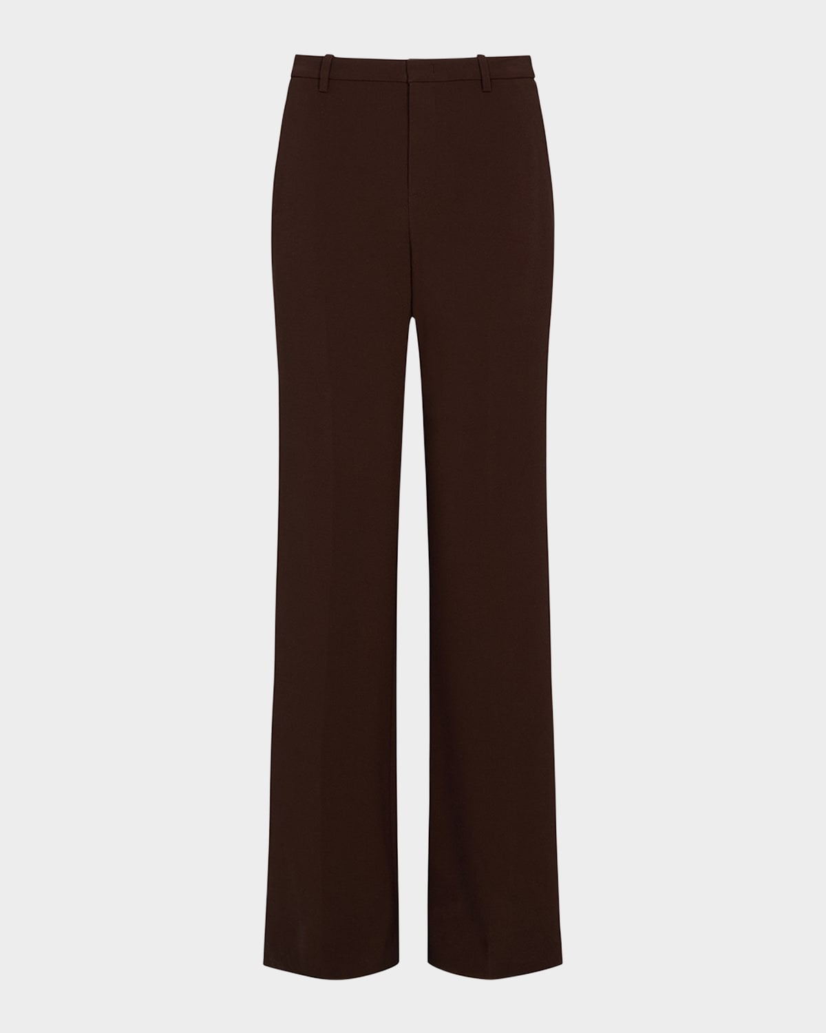 Vince classic pants tailored with pintucks Mid rise Flat front Side slip pockets; back welt pockets Full length Flared legs Hookandbar; zip closure Polyester/viscose/elastane Imported
