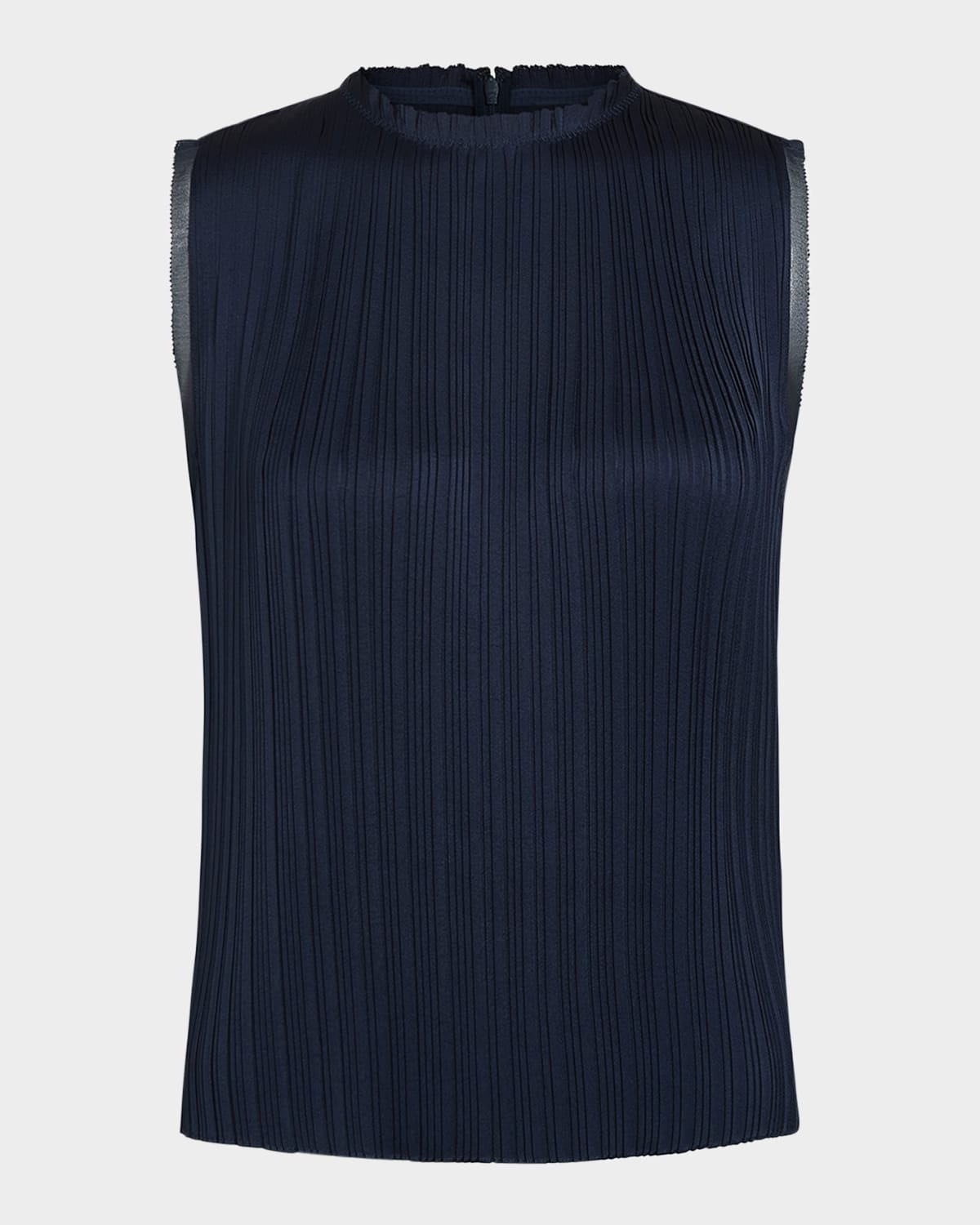 - Vince shell top in fine pleats - Approx. 22.3"L from shoulder to hem - Crew neckline - Sleeveless - Relaxed fit - Curved hem - Invisible back zip closure - Polyester - Imported - Shipping - Direct from Vendor, usually ships within 10 business days. - Model is 5'10"/177cm.