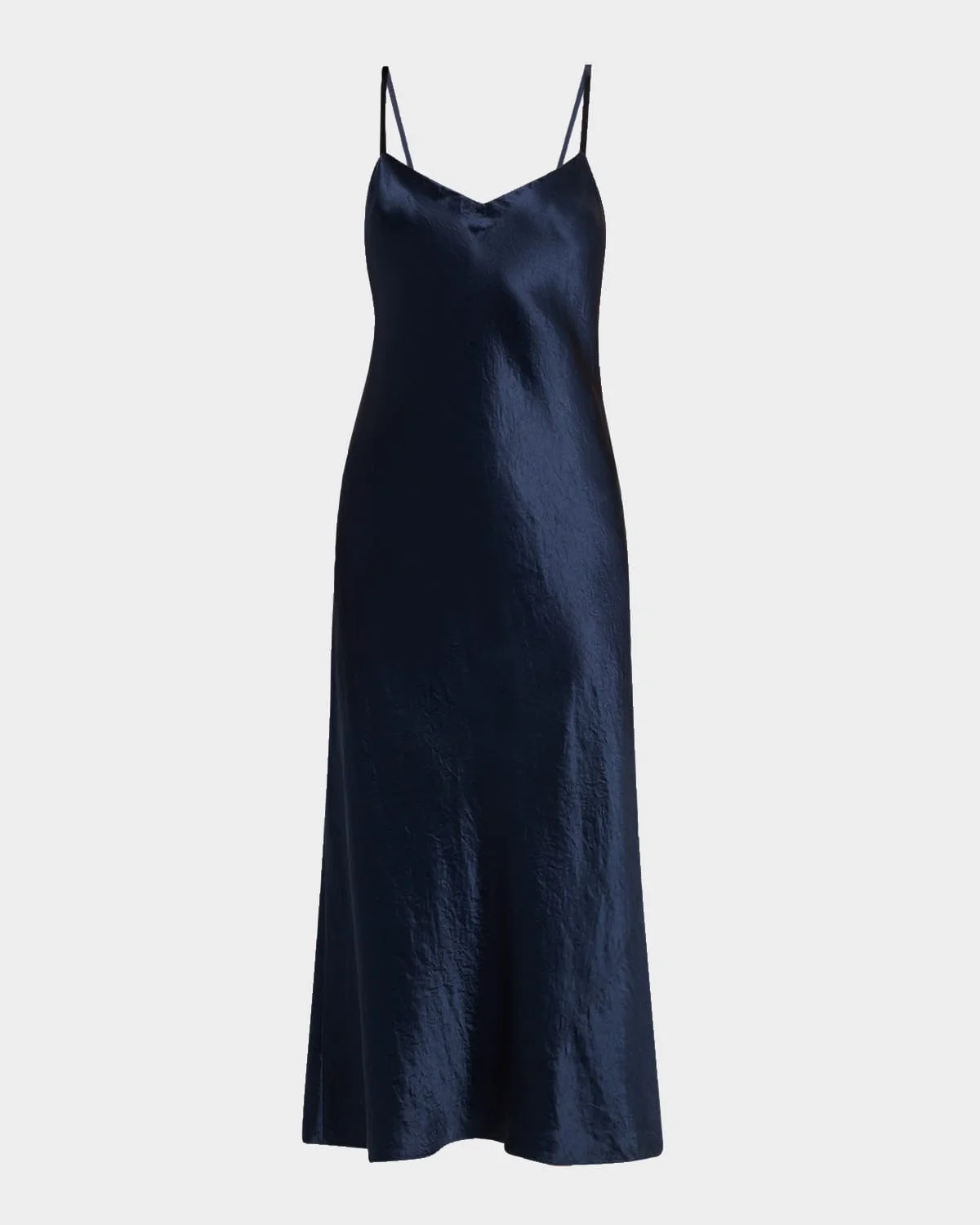 Vince midi dress crafted from lustrous satin & nbsp; V neckline & nbsp; Adjustable straps Slip silhouette Hem falls below the knee Slipover style & nbsp; Acetate Hand wash Imported