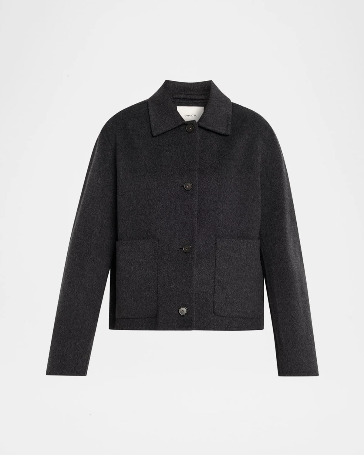 Vince short jacket crafted from a luxurious cashmere and wool blend & nbsp; Point collar Longs sleeves Patch pockets Relaxed fit Hem falls to the hip Button-front & nbsp; Wool/nylon/polyamide/cashmere Imported SIZE & FITModel measurements: 5 & apos;10" tallModel is wearing a US size 4/Small