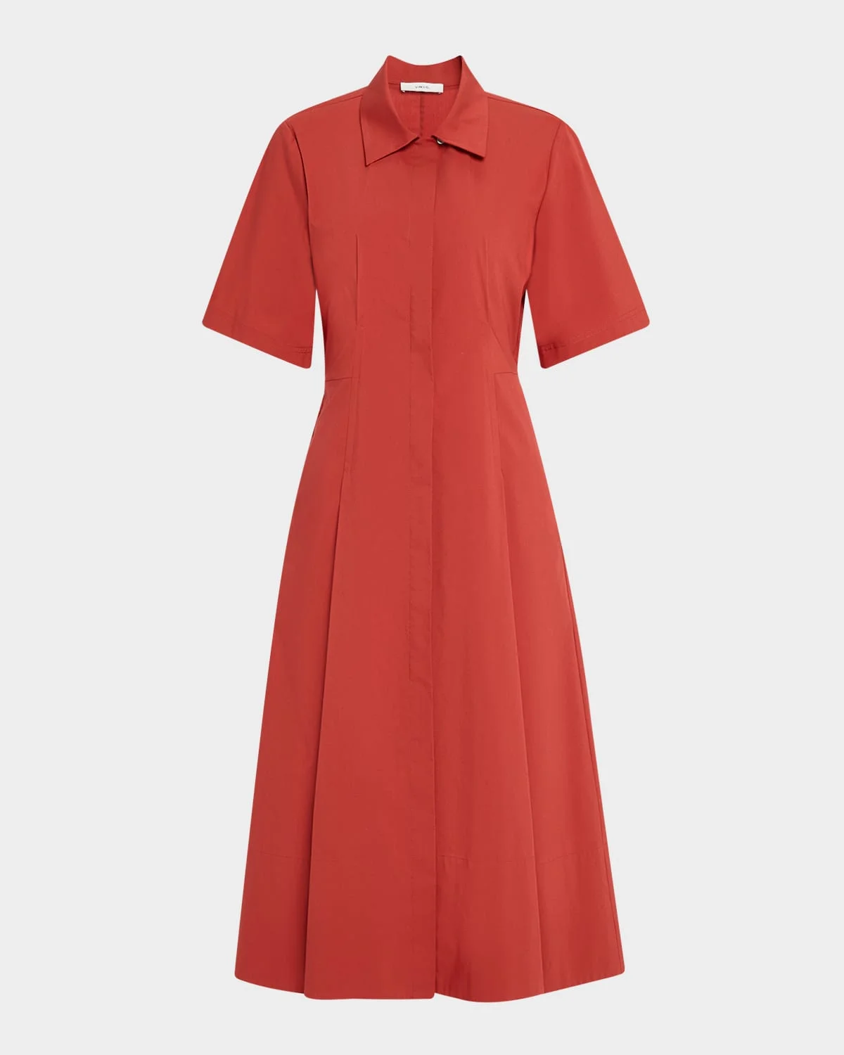 - Vince cotton midi dress finished with a pintuck waist - Point collar - Short sleeves - Shirtdress silhouette - Hem falls below the knee - Concealed button-front - Cotton - Dry clean or machine wash cold - Imported