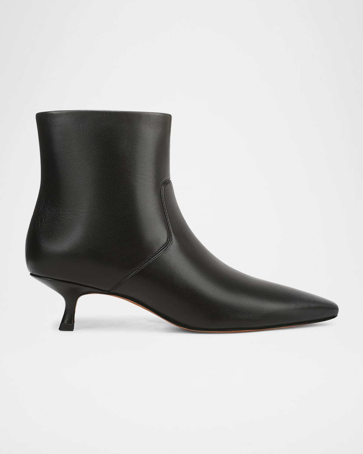 Vince "Simone" versatile leather ankle boots 1.75 in / 45 mm architectural kitten heel Boot shaft, approx. 5.1"H Pointed toe Side zip eases dress Leather outsole Lining: Leather Spot clean Imported
