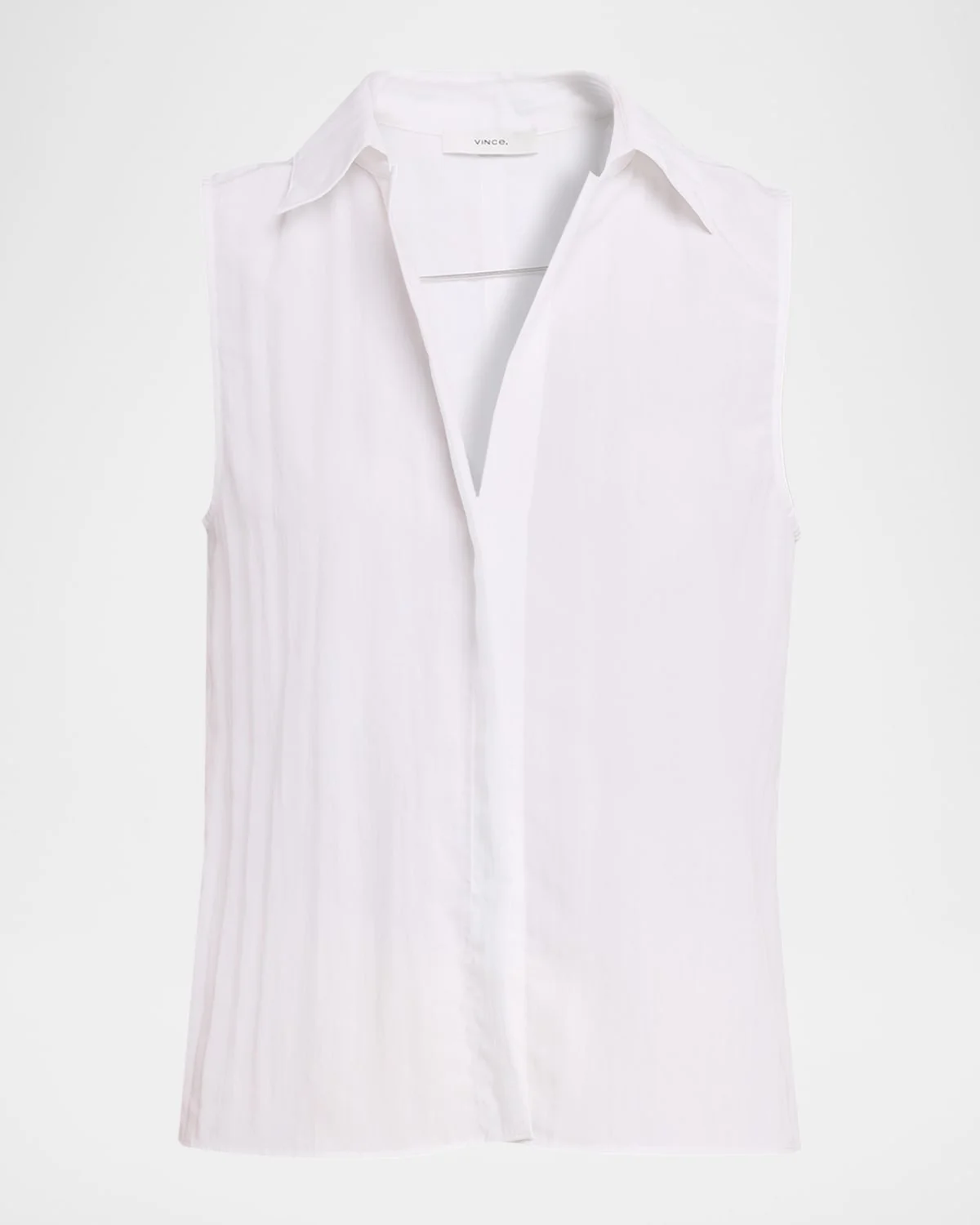 - Vince lightweight shirt - Point collar - Sleeveless - Loose, boxy fit - Hem falls to the hip - Concealed button-front - Lyocell/nylon/polyamide/wool - Hand wash or dry clean - Imported
