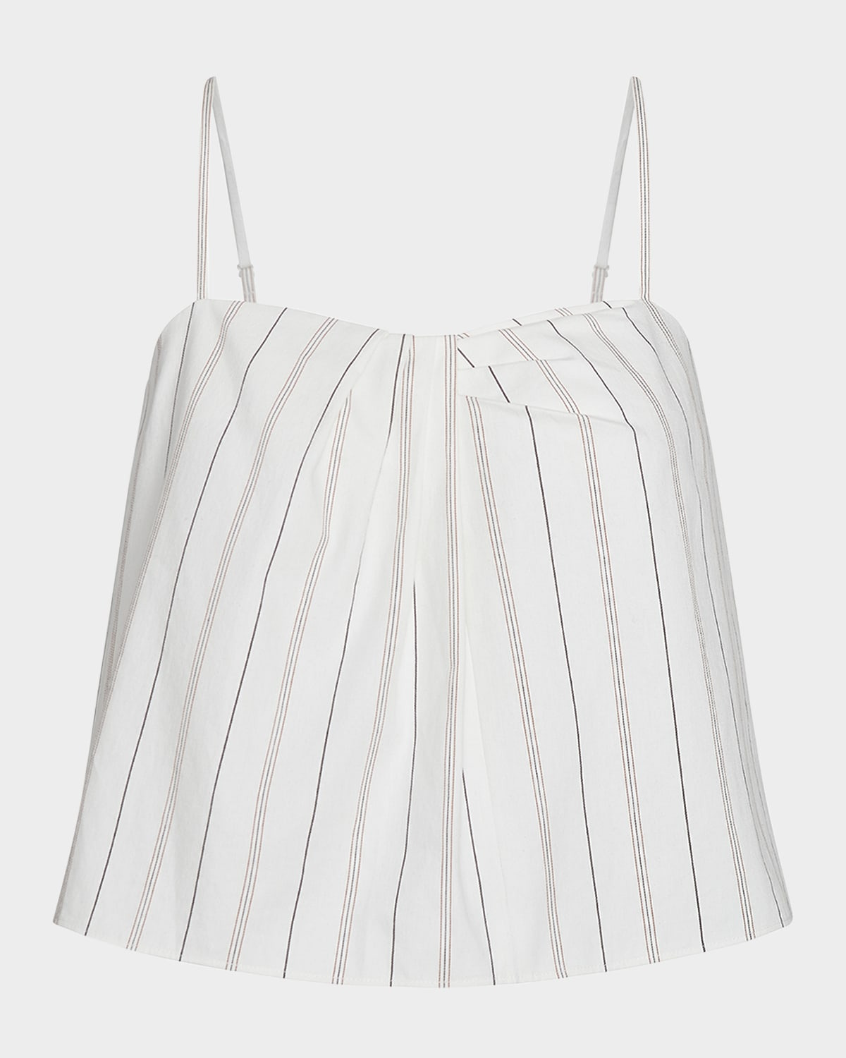 - Vince striped top finished with a draped front - Square neckline - Adjustable spaghetti straps - Loose fit - Hem sits at the hip - Invisible back zip - Cotton/polyester - Hand wash or dry clean - Imported