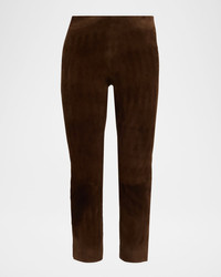 Supple lamb suede pants finished with a split hem by Vince. Approx. 8.5" rise; 27" inseam High rise Skinny legs Cropped length Side zip Leather Professional clean only by leather expert Imported