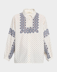 Crafted in cotton poplin, the Weekend Max Mara "Adda" shirt is speckled in a floral print and features bold border print detailing Point collar; button front Drop shoulders Bracelet sleeves Button cuffs Relaxed fit Cotton Machine wash cold Imported