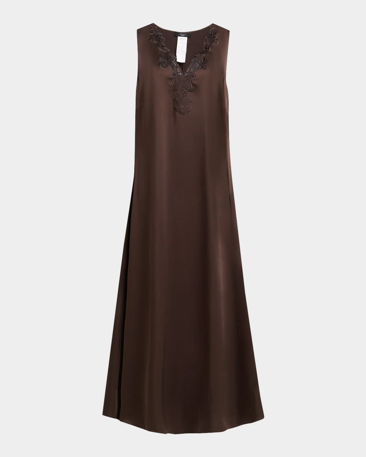 Weekend Max Mara "Canossa" midi dress detailed with tonal lace trim V neckline Sleeveless Hem falls below the knee Aline silhouette Polyester Hand wash Imported