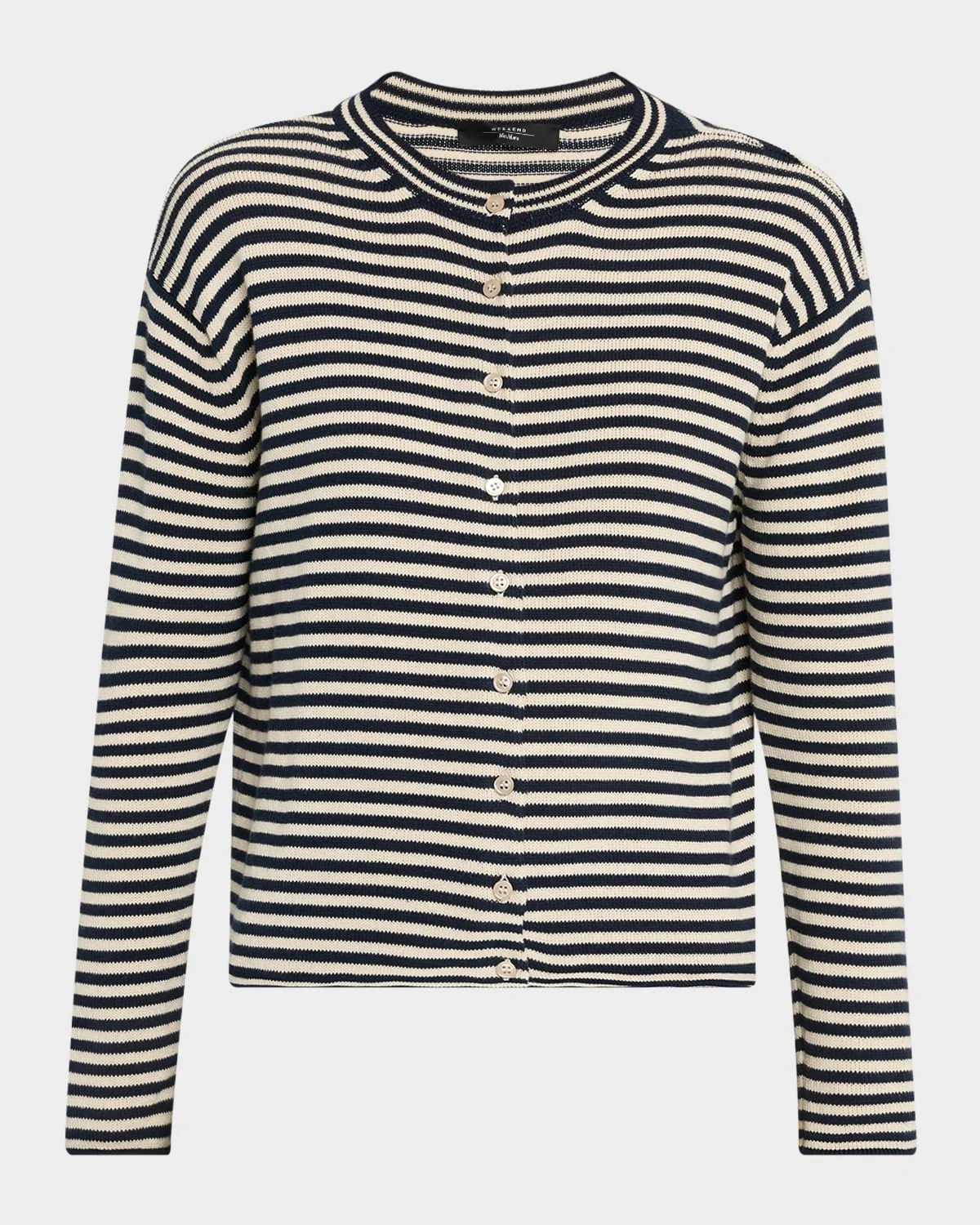 Weekend Max Mara "Eritea" cotton knit cardigan with horizontal stripes Crew neckline Drop shoulders Long sleeves Relaxed fit Cotton Hand wash Imported
