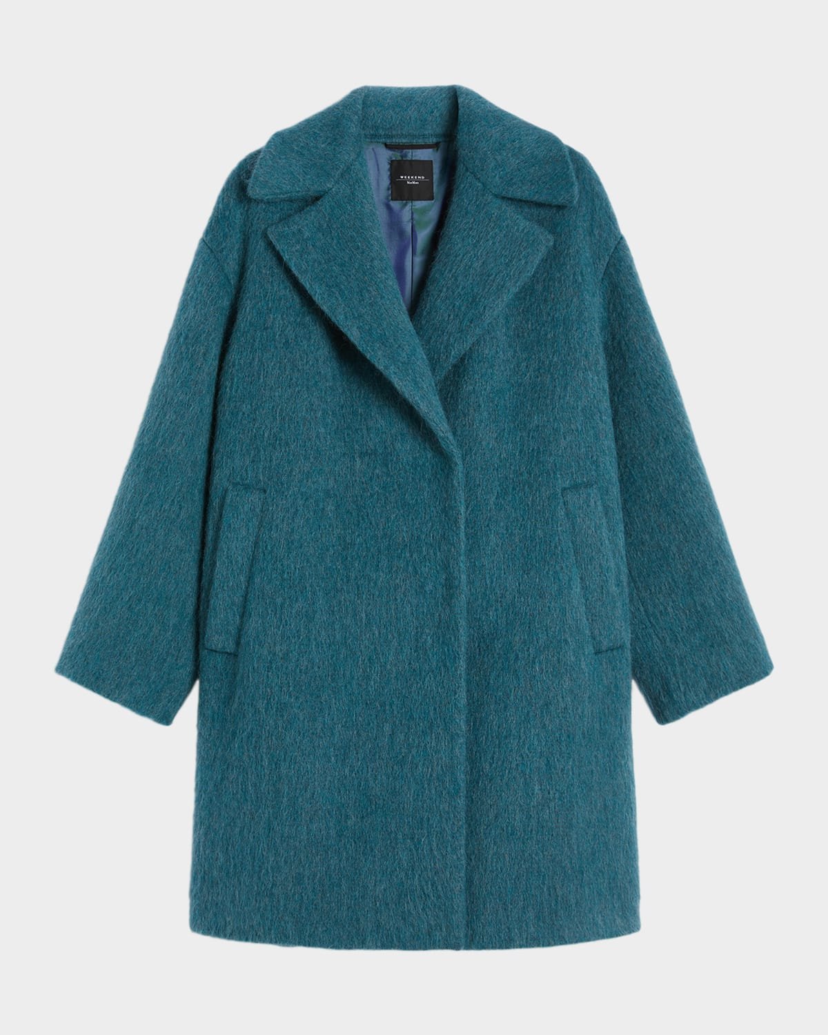 Weekend Max Mara "Rada" soft singlebreasted coat finished with a slightly flared hem Wide lapel collar Long sleeves Dropped shoulders Two side welt pockets Midi length Oversized fit Concealed button closure Virgin wool/mohair/alpaca wool Dry clean Made in Morocco