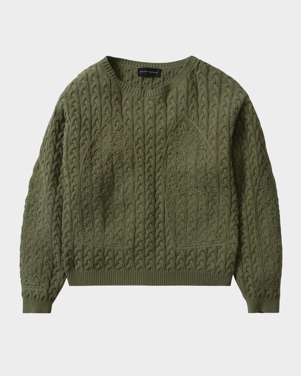- WHO DECIDES WAR "Lagoon" cable knit sweater featuring tonal embroidery - Crew neckline - Long sleeves - Regular fit - Ribbed cuffs and hem - Pullover style - Cotton - Imported