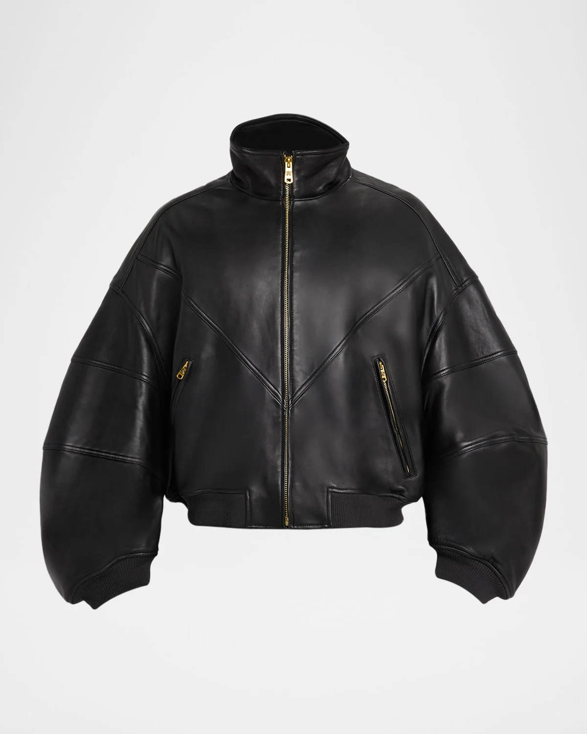 Willy Chavarria "Ruff Rider" smooth leather jacket featuring paneled construction Spread collar Dropped shoulders Angled zip pockets Relaxed fit Zpfront Leather Specialist dry clean only Imported