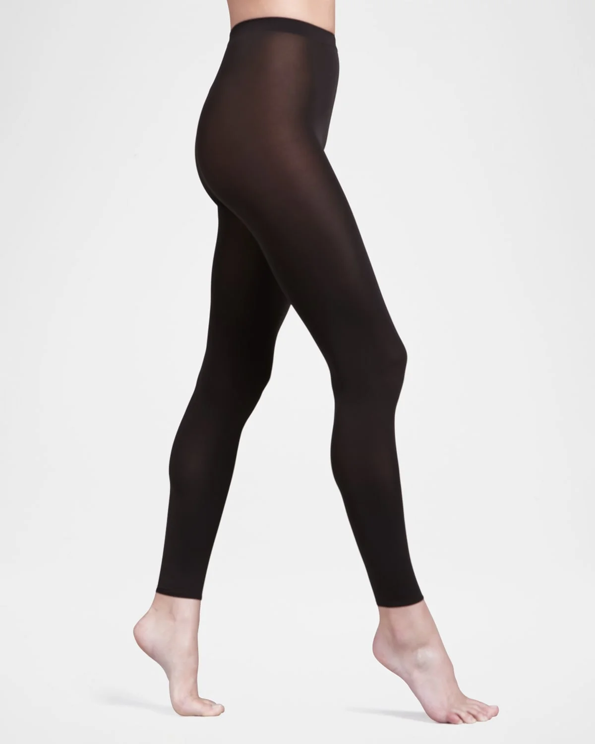 Wolford "Velvet de Luxe" leggings Soft knit waistband Applied plating technique creates excellent wear 66 denier Nylon/spandex Made in Austria