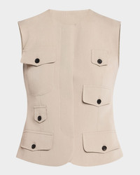 - Wynn Hamlyn utility vest - Round neckline - Sleeveless - Flap pockets - Tailored fit - Hem sits at the hip - Concealed button-front - Polyester/rayon/cellulose acetate/spandex - Lining: Acetate/polyester - Dry clean - Imported