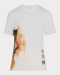 The Y3 "AOP" Tshirt is made of soft cotton and inspired by the warmth and energy of amber ink, representing transformation and beauty expressed through subtle shades to rich tones. Crew neckline Short sleeves Pullover style Oversized fit Machine wash cold. Lay flat to dry Cotton Imported