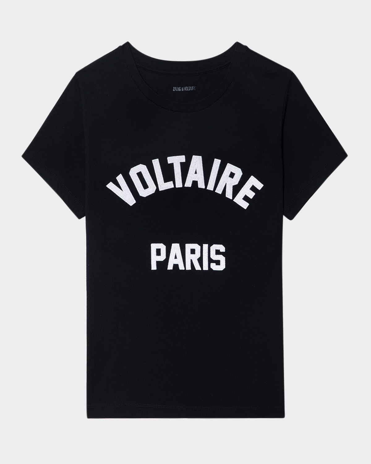 - Zadig & Voltaire "Alys" t-shirt embroidered with a contrasting logo graphic - Crew neckline - Short sleeves - Relaxed fit - Hip length - Pullover style - Cotton - Machine wash cold, line dry - Made in Portugal